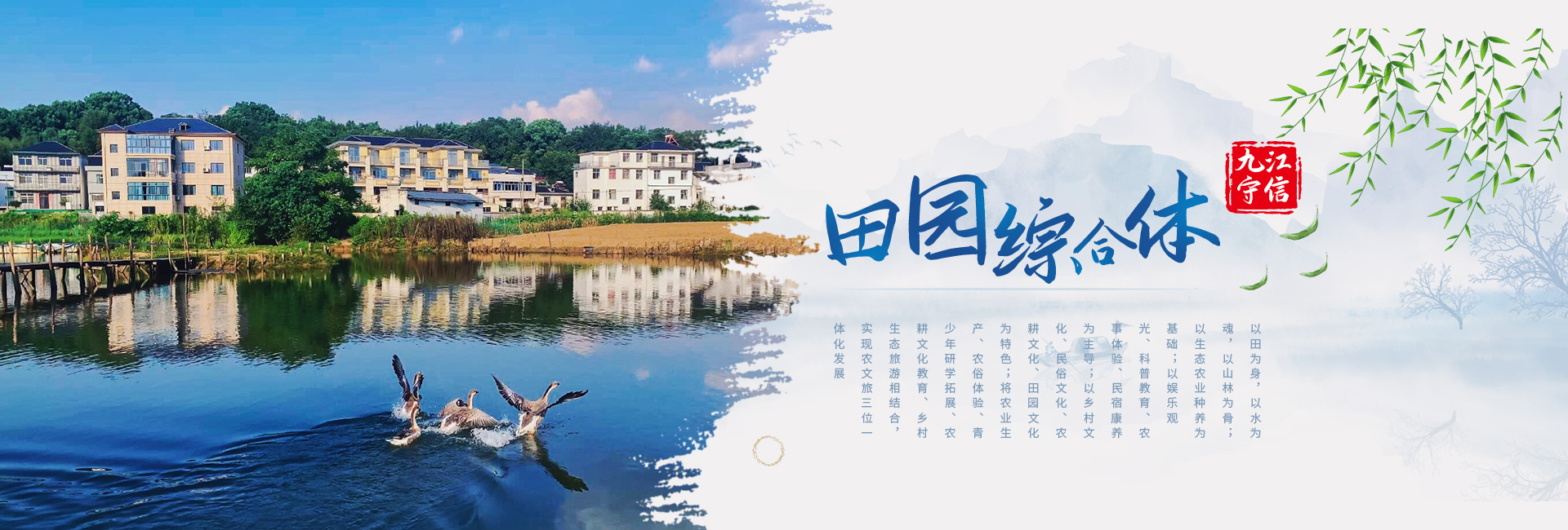九江守信田園綜合體以田為身,以水為魂,以山林為骨;以生態(tài)農(nóng)業(yè)種養(yǎng)為基礎(chǔ);以娛樂觀光、科普教育、農(nóng)事體驗、民宿康養(yǎng)為主;以鄉(xiāng)村文化、民俗文化、農(nóng)耕文化、田園文化為特色;將農(nóng)業(yè)生產(chǎn)、農(nóng)俗體驗、青少年研學(xué)拓展、農(nóng)耕文化教育、鄉(xiāng)村生態(tài)旅游相結(jié)合,實現(xiàn)農(nóng)文旅三位一體化發(fā)展,成為生態(tài)性、主題性、復(fù)合型農(nóng)莊公園模式...